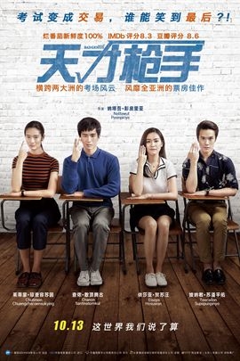 影片根據2014年轟動(dòng)一時(shí)的亞洲考場(chǎng)作弊案改編,講述了天才學(xué)霸利用高智商考場(chǎng)作弊牟取暴利的故事。出生平凡的天才少女Lynn在進(jìn)入貴族學(xué)校后,結識了富二代同學(xué)Grace與Pat,從此開(kāi)始了考場(chǎng)作弊生涯,與此同時(shí),另一名記憶力極佳的天才學(xué)霸Bank發(fā)現了Lynn不為人知的“交易”。經(jīng)過(guò)多場(chǎng)險象環(huán)生的“作弊戰爭”后,Lynn接下最后一單在國際考場(chǎng)上為富家子弟作弊的天價(jià)委托。一場(chǎng)橫跨兩大洲的完美作弊方案橫空出世,然而一切并不像他們想的那么簡(jiǎn)單……