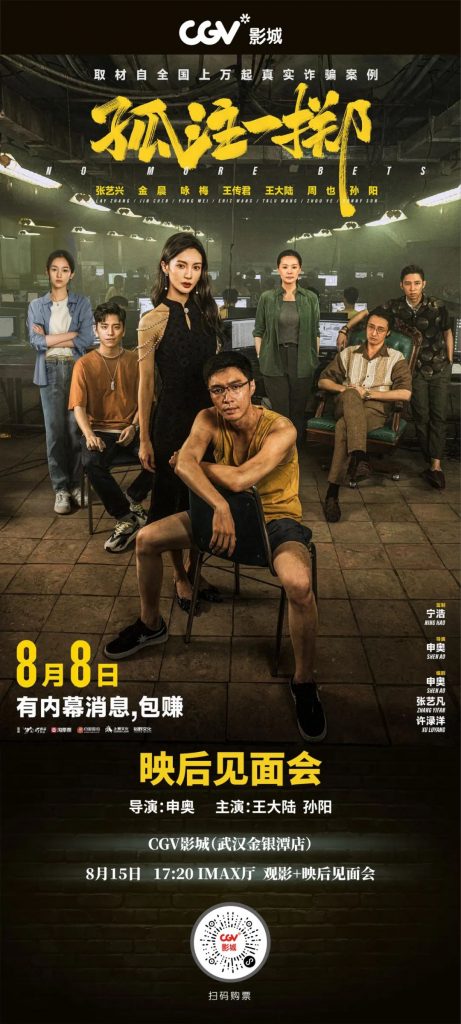 《孤注一擲》首部揭秘境外網(wǎng)絡(luò )詐騙全產(chǎn)業(yè)鏈內幕的犯罪電影,影片取材自全國上萬(wàn)起真實(shí)詐騙案例,寧浩監制,申奧導演,張藝興、金晨、詠梅、王傳君領(lǐng)銜主演,王大陸、周也特別出演,孫陽(yáng)、鄧萃雯主演,多角度全方位展現網(wǎng)詐騙局套路,細節真、尺度大令反詐民警都感到驚訝!