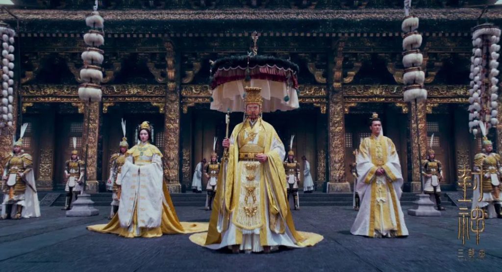 商王朝距今已有三千多年,可供研究的文物、建筑遺跡與參考文獻少之又少。劇組曾走訪(fǎng)河南、陜西、山西等地博物館和遺址古跡,以元明道教水陸畫(huà)作為基礎,融合商周青銅器美學(xué)元素以及宋人山水,創(chuàng )作出《封神三部曲》獨有的美學(xué)體系,并將其應用于服裝造型、場(chǎng)景搭建、道具制作等各個(gè)方面。