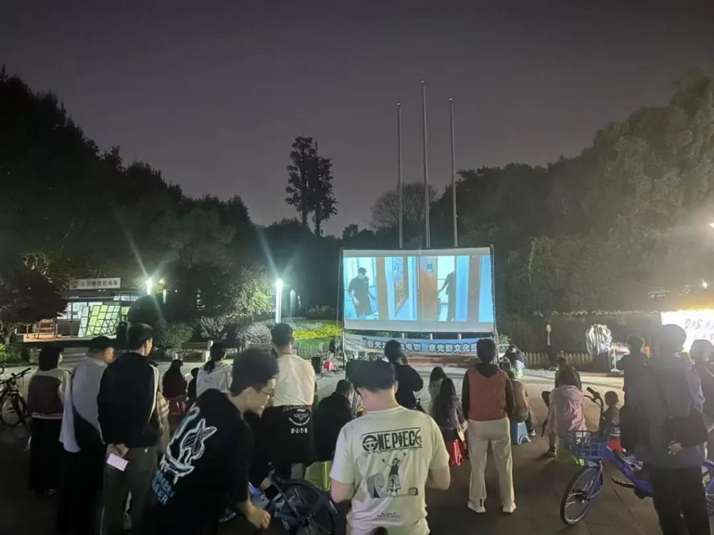 當晚6點(diǎn)40許,三處放映場(chǎng)地同時(shí)啟幕,經(jīng)典電影畫(huà)面躍然幕上,吸引了眾多市民前來(lái)觀(guān)影。此次放映影片經(jīng)過(guò)精心挑選兼具藝術(shù)性與觀(guān)賞性,其中有扣人心弦的警匪動(dòng)作片《海關(guān)戰線(xiàn)》、溫情治愈的寫(xiě)實(shí)電影《人生大事》?;顒?dòng)現場(chǎng),有位市民感觸頗深,他表示:“小時(shí)候常和家人一起看露天電影,如今在廣場(chǎng)里重溫這份記憶,感覺(jué)特別溫暖?!辈簧倌贻p觀(guān)眾也興奮的表示,這種“星空下觀(guān)影”的體驗新穎有趣,為城市夜生活增添了別樣浪漫。
